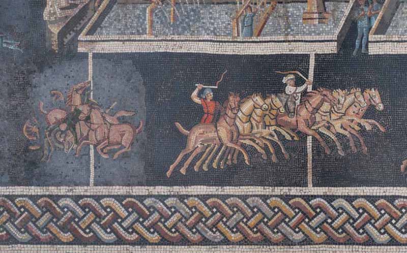 Certains ne manquent pas de comparer toutes ces dérives à la pureté du sport antique, et l’on évoque avec nostalgie l’amateurisme de l’éphèbe grec courant sur la piste du stade d’Olympie : une vision d’ailleurs assez erronée des concours antiques, comme on le verra, mais il est vrai que l’argent, certes bien présent, n’atteignait pas dans le sport grec les mêmes sommets. En revanche, si nous regardons du côté de la Rome antique et des courses de chars, la compétition la plus populaire de l’Vrbs, force est de constater que tous les ingrédients de notre sport-business y sont déjà visibles. Il faut ici faire le rapprochement avec le football contemporain qui a été considéré comme étant peut-être la seule passion planétaire de notre temps : or, les jeux du cirque auraient bien mérité la même appellation puisque les courses de chars suscitaient les mêmes réactions déchaînées des spectateurs dans tout l’Empire romain, depuis la péninsule ibérique jusqu’à Antioche et Constantinople, depuis Lyon et Rome jusqu’à Carthage.