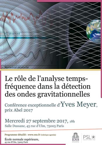 Yves Meyer, Prix Abel 2017, donnera une conférence à l’ENS sur le rôle de l’analyse temps fréquence dans la détection des ondes gravitationnelles.