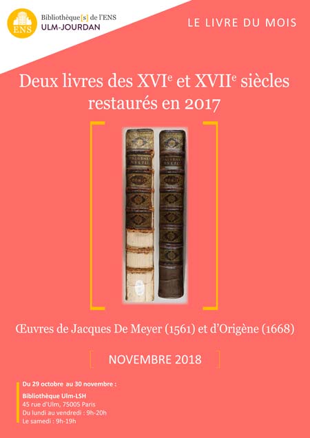 En novembre, dans le cadre de son Livre du mois, la bibliothèque Ulm-Jourdan présente une sélection d'ouvrages précieux des XVIe et XVIIe siècles, issus de ses fonds patrimoniaux et restaurés en 2017.