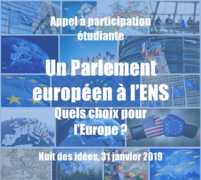 Pour l’occasion, l’ENS invitera des équipes d’étudiant-e-s à débattre comme au Parlement européen sous la forme de discussions argumentées, de leurs propositions concrètes pour l’Europe.